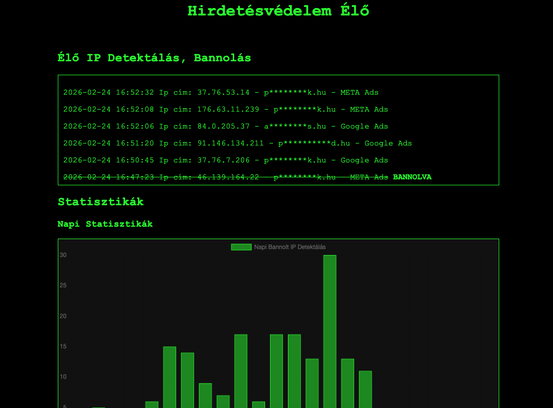 A rendszer automatikusan kiszűri a botokat, csaló kattintókat és ismétlődő támadásokat.